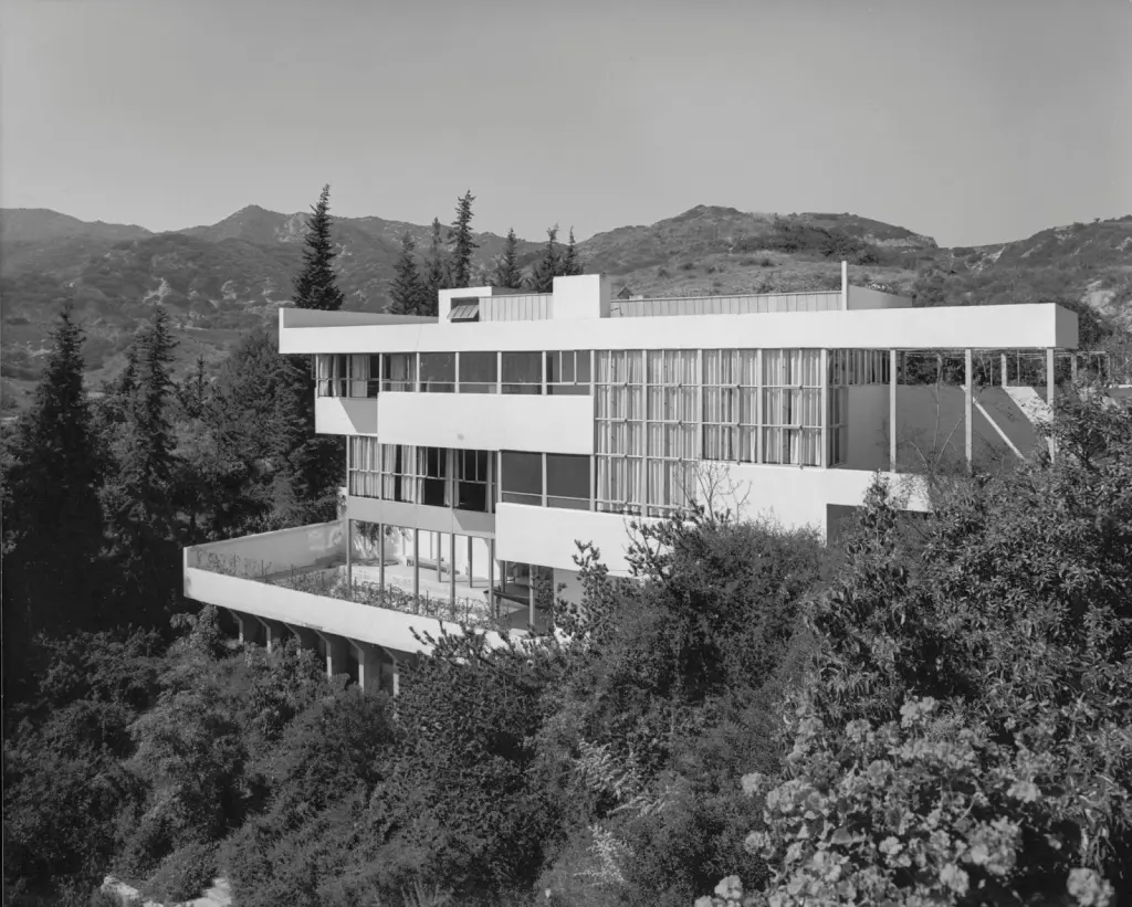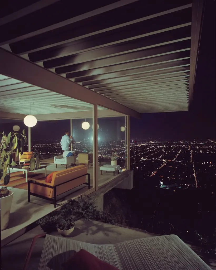 This shift changed everything. Entire façades now dissolve into view. Koenig’s Case Study House #22 in Los Angeles appears to hover in the air, its glass walls held between slender steel lines. Neutra’s Lovell Health House, built two decades earlier, used its steel skeleton to open wide panes of glass toward sun, air, and vista. These were not decorative flourishes but experiments in how construction could shape sensation.