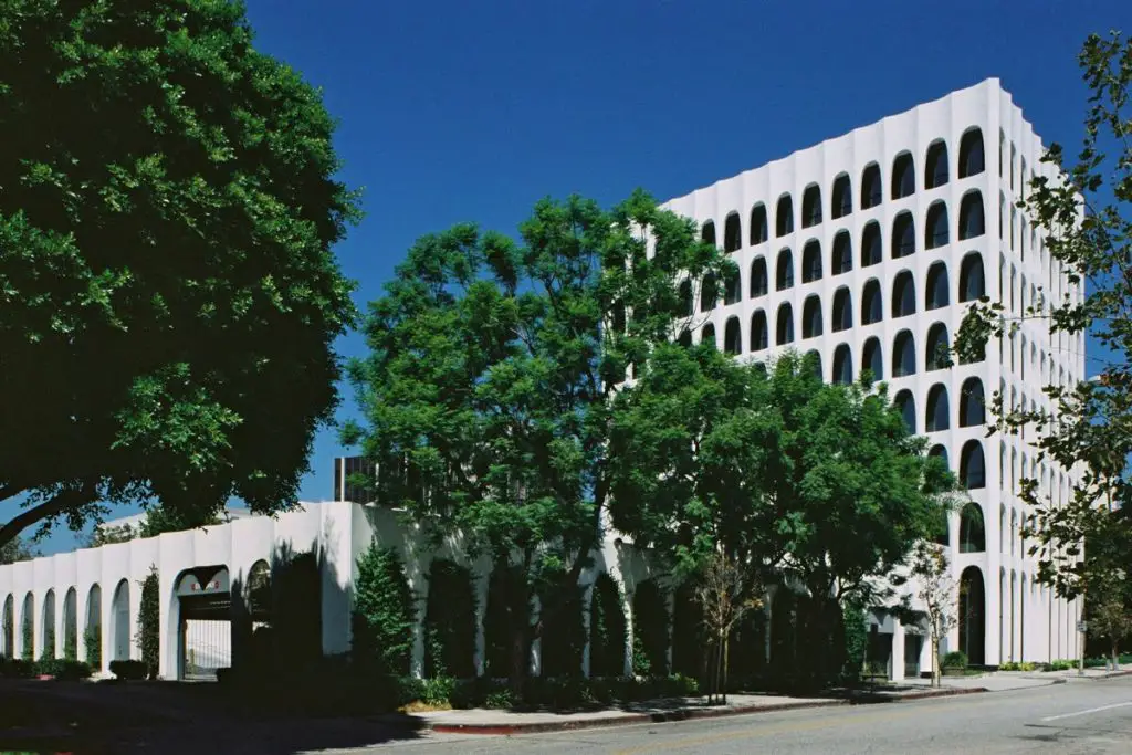 Further south, along Wilshire Boulevard, public design takes on a different scale. Edward Durell Stone’s Perpetual Savings and Loan building, now the Los Angeles County Department of Mental Health, stands as an emblem of mid-century civic ambition. Completed in 1960, its delicate concrete lattice and precisely balanced volumes demonstrate how modernist principles found expression in even the most practical of structures. The building remains a visual anchor in the cityscape, a reminder of the era’s attention to both function and form.