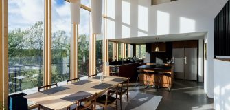 This new building system provided an ideal solution, as the panels provide long free spans, can be prefabricated, and bring a warm character to the residence when left exposed.