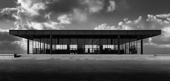 The proportions of the interior derive from a carefully worked-out series of squares, cubes and double cubes, creating a sense of balance and order. The light comes mainly from above – from a grid of square skylights and strips of high clerestory windows.