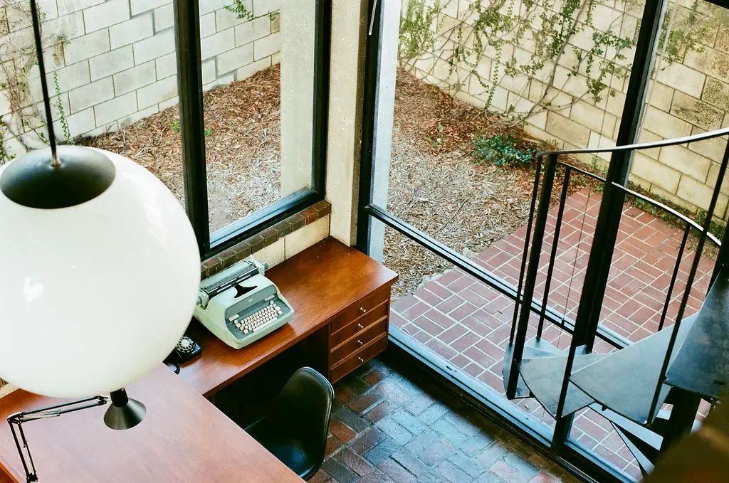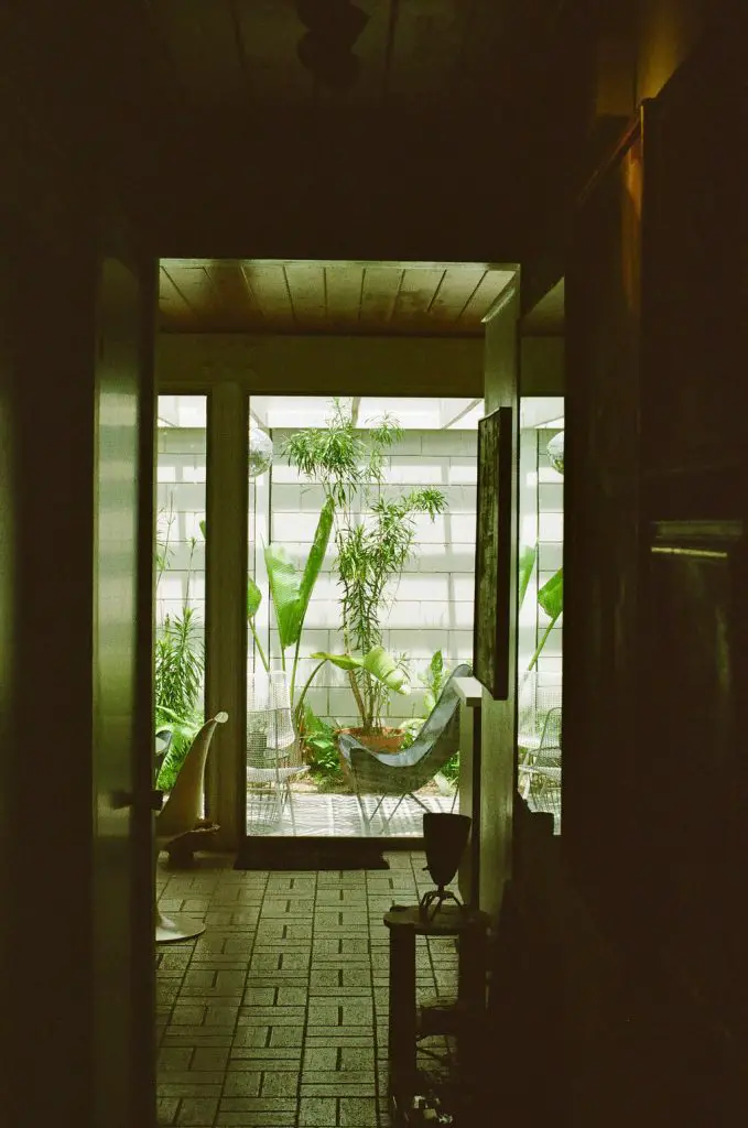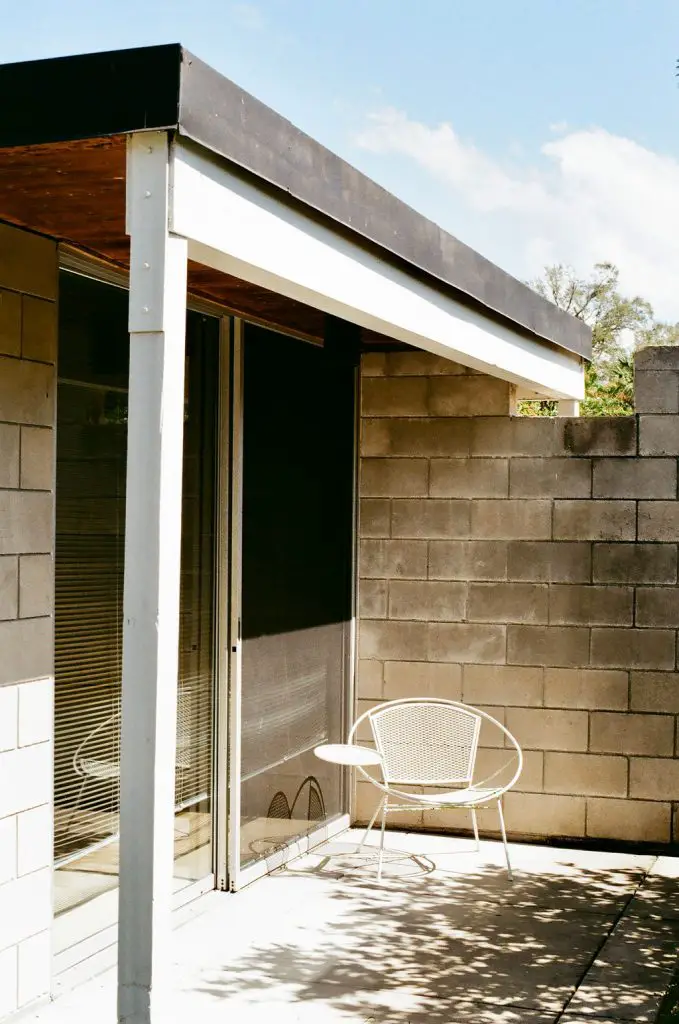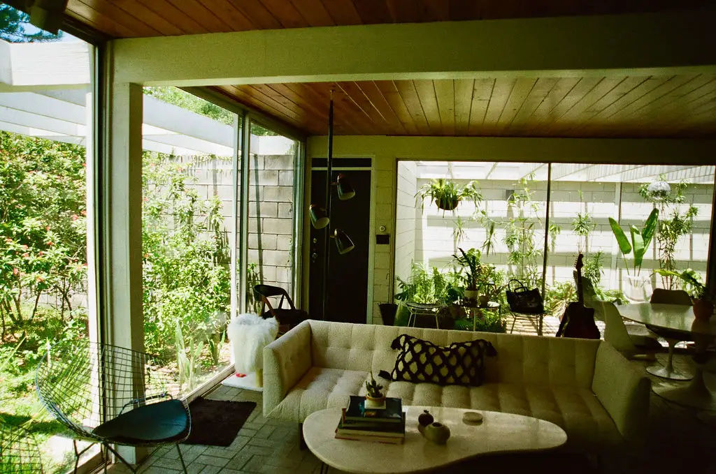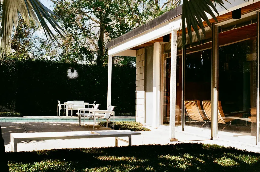 Leedy’s aesthetic principles come alive and make this house special: the structural clarity, the openness to the weather and light, and the seamless link between living spaces and nature. The sliding glass doors reveal a courtyard that becomes an outdoor room; the exposed structural system becomes part of the aesthetic rather than hidden; the flat roof lets the space beneath feel expansive. The use of concrete block and glass is refined, warm and rooted in a specific climate and place. The house radiates a mid‑century modern elegance while feeling inviting and comfortable.