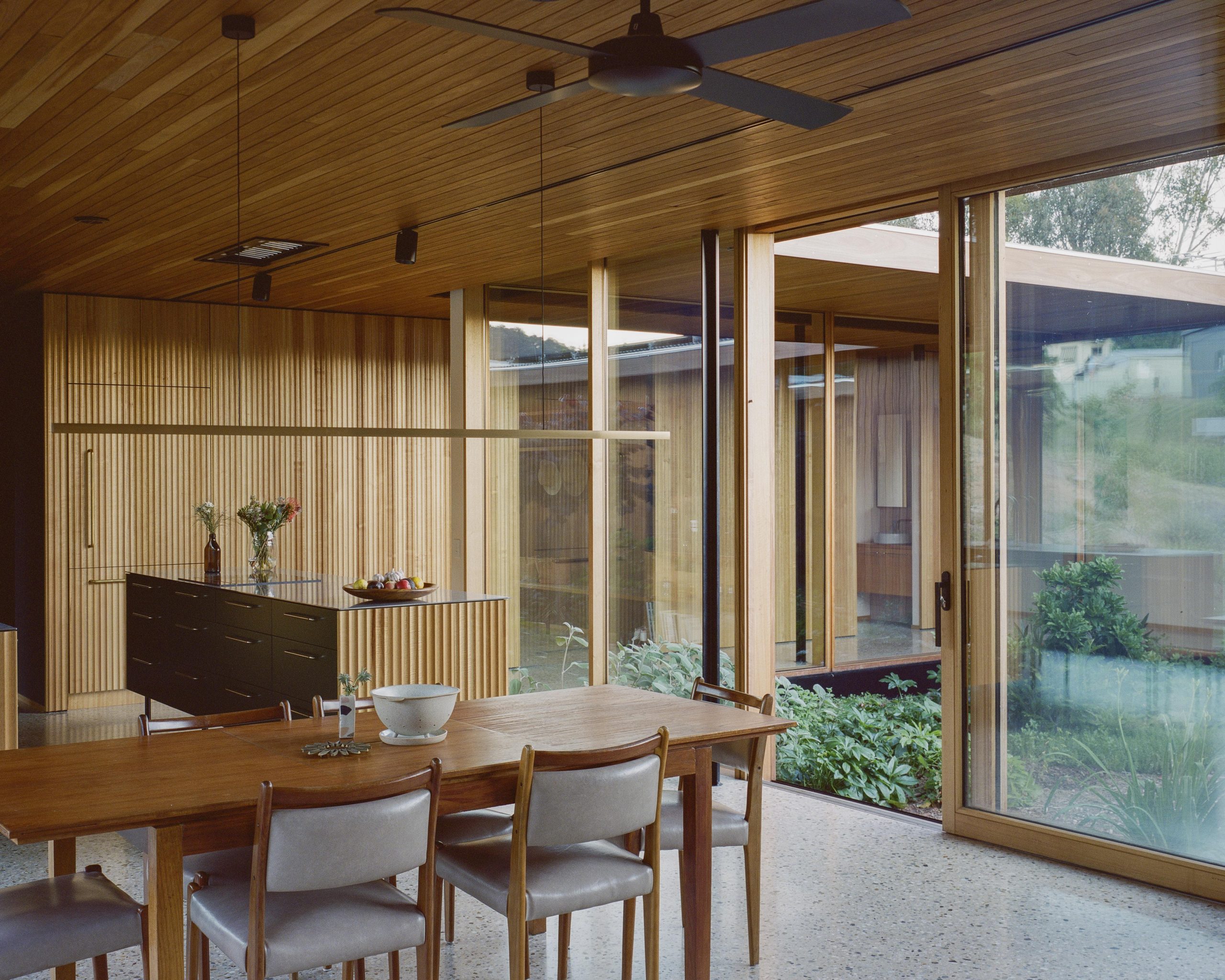That courtyard is the soul of the place. Julia and her mum chose the plantings to shift dramatically with the seasons: Forest Pansies, a Magnolia Stellata, Fine Leaf Maples, hellebores, and soft chamomile lawn. It’s not just a garden, but a living memory – something shaped by family, landscape, and time.