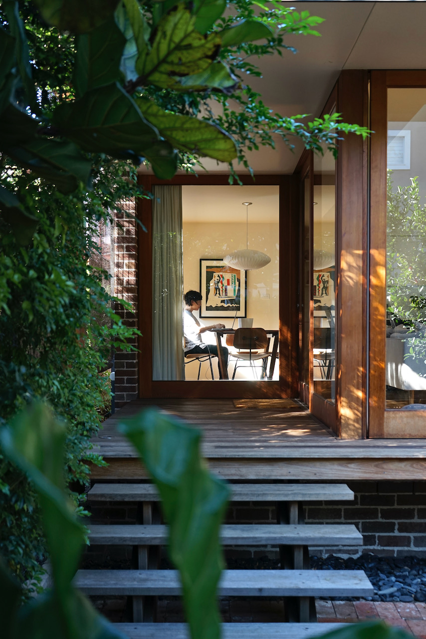 In another project, a pavilion addition to a Neutral Bay home draws from Japanese garden houses to create a space that adapts across the day and seasons. Here, the garden isn’t just an outlook—it becomes a central element in the home’s layout. Reclaimed brick and native timber offer tactile contrast, while large operable windows and a light shelf respond to the climate. Spatially, the layout favors diagonals and framed views, echoing the layering often found in Japanese interiors. It’s a place of movement and stillness, flexible and enduring.