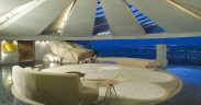 One of the most modern buildings of it’s time, the Chemosphere by architect John Lautner, is praised for it’s unique design and for it’s ingenious solution to the problem of building on a lot with a dramatic angled slope of 45 degrees, making construction nearly impossible.