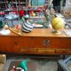 - Place a bold geometric print above a low teak sideboard to create a strong focal point without cluttering the room.