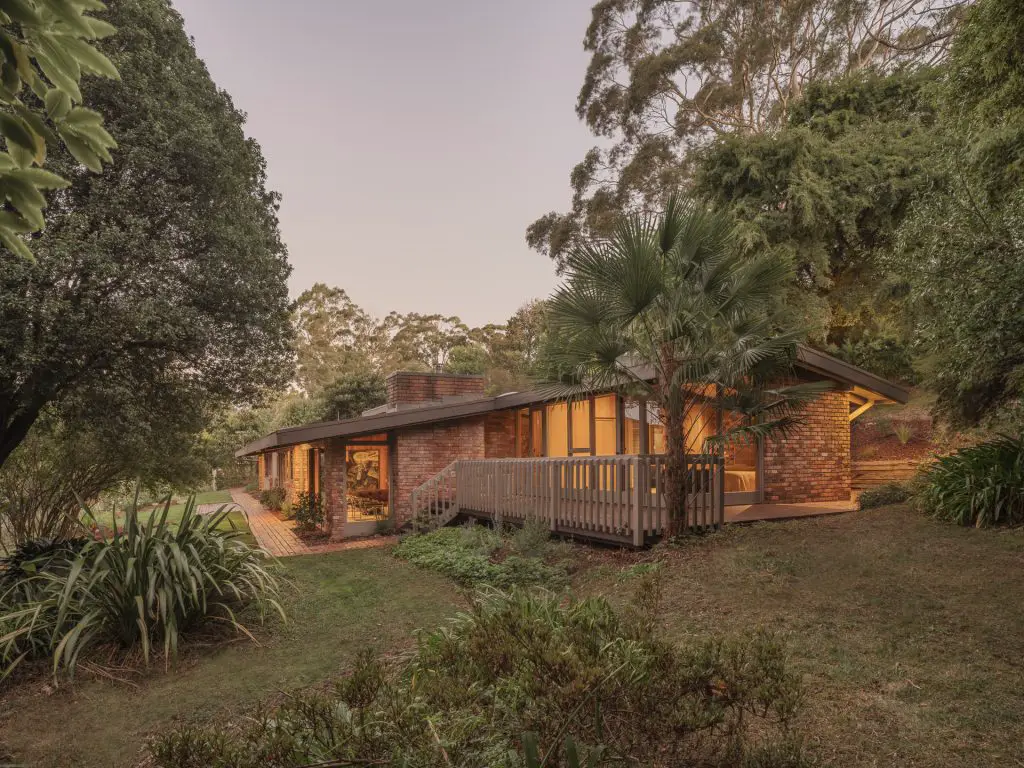This house has recently sold. If you are thinking of selling your mid-century home, get in touch. Perched high in the hills of Kallista, a town in the Greater Melbourne area, The Manna Gum House looks out over Mount Donna Buang and the soft green folds of the Yarra Ranges. Built in the 1970s and cared for by just two owners, it is a home shaped by landscape, natural materials, and a clear mid-century vision. Its story is one of thoughtful design and careful preservation, where original ideas remain intact and recent updates feel calm and considered.