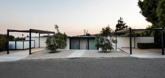 The primary residence is built into two connecting blocks. The lower flat, one story compartment accommodates the open plan kitchen/living room/dining. Transparency is largely created by floor-to-ceiling windows, which deliver a dramatic view of the surroundings, a typical feature for modern contemporary homes.
