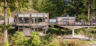 Enveloped by stunning scenery, this glass cabin is a place to unwind as much as it is to enjoy nature. Despite the seemingly limited space, the pavilions total of 1,240 square feet, wrapped around all floor to ceiling windows, contain two bedrooms, a kitchen, a lounge area, a utility space as well as a basement for storage.Â