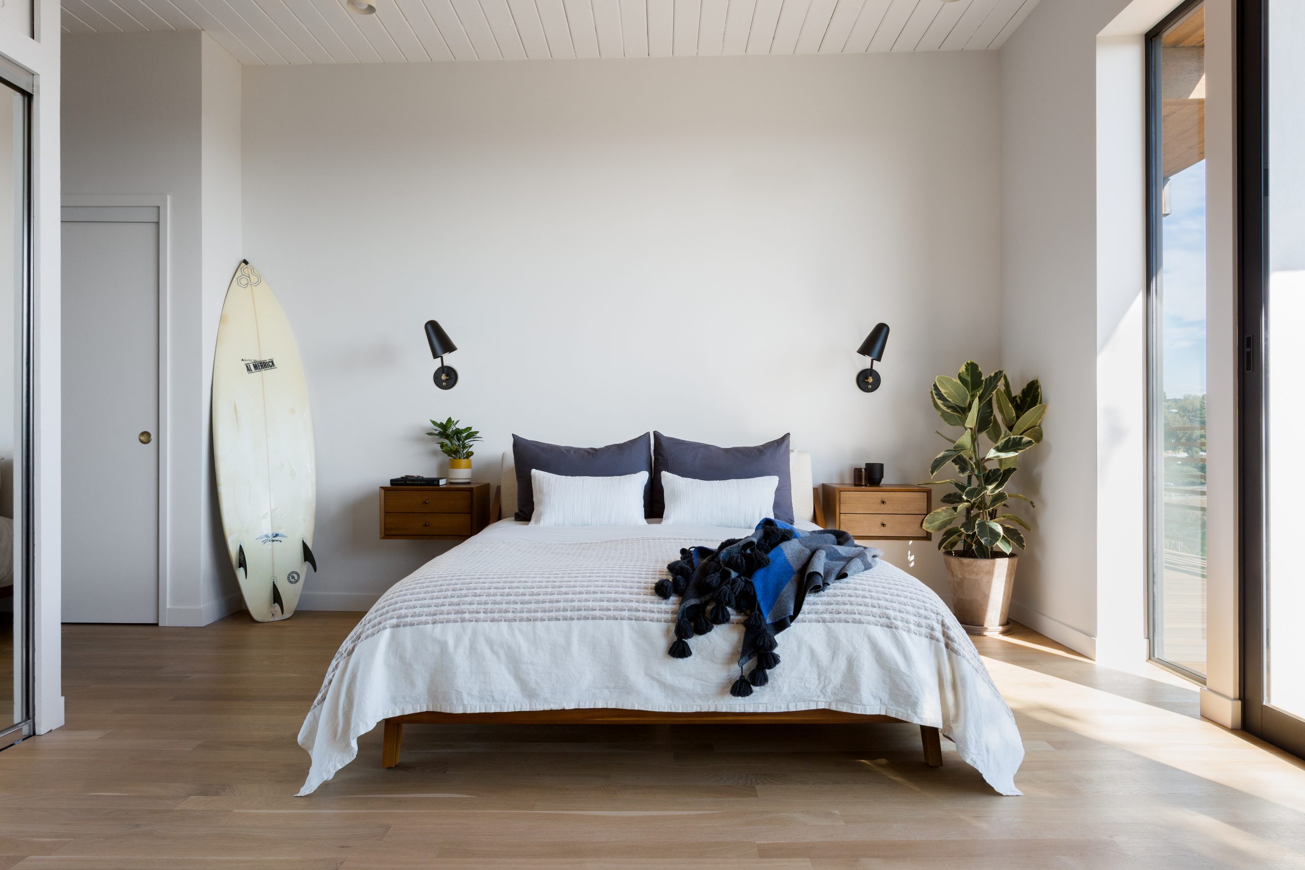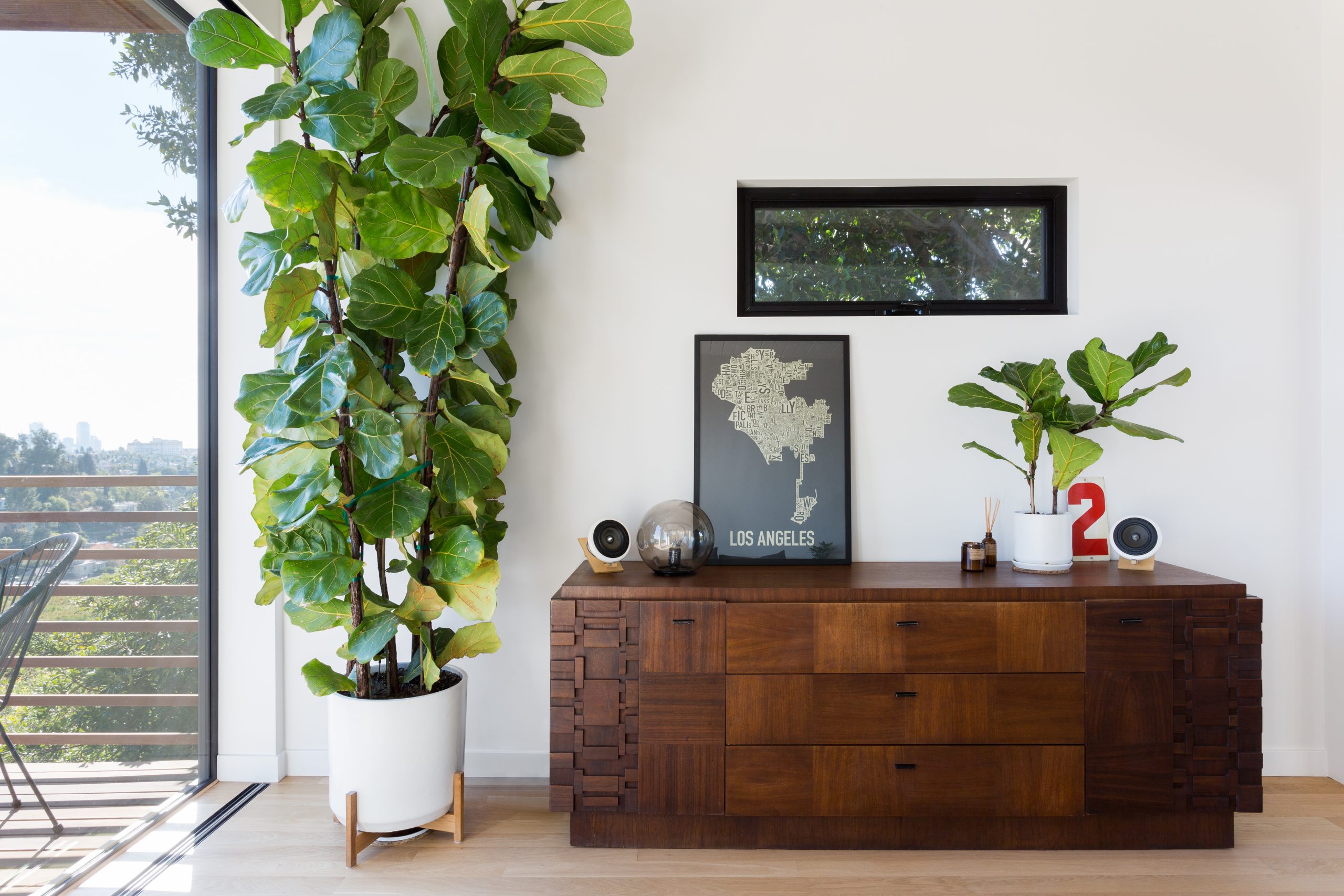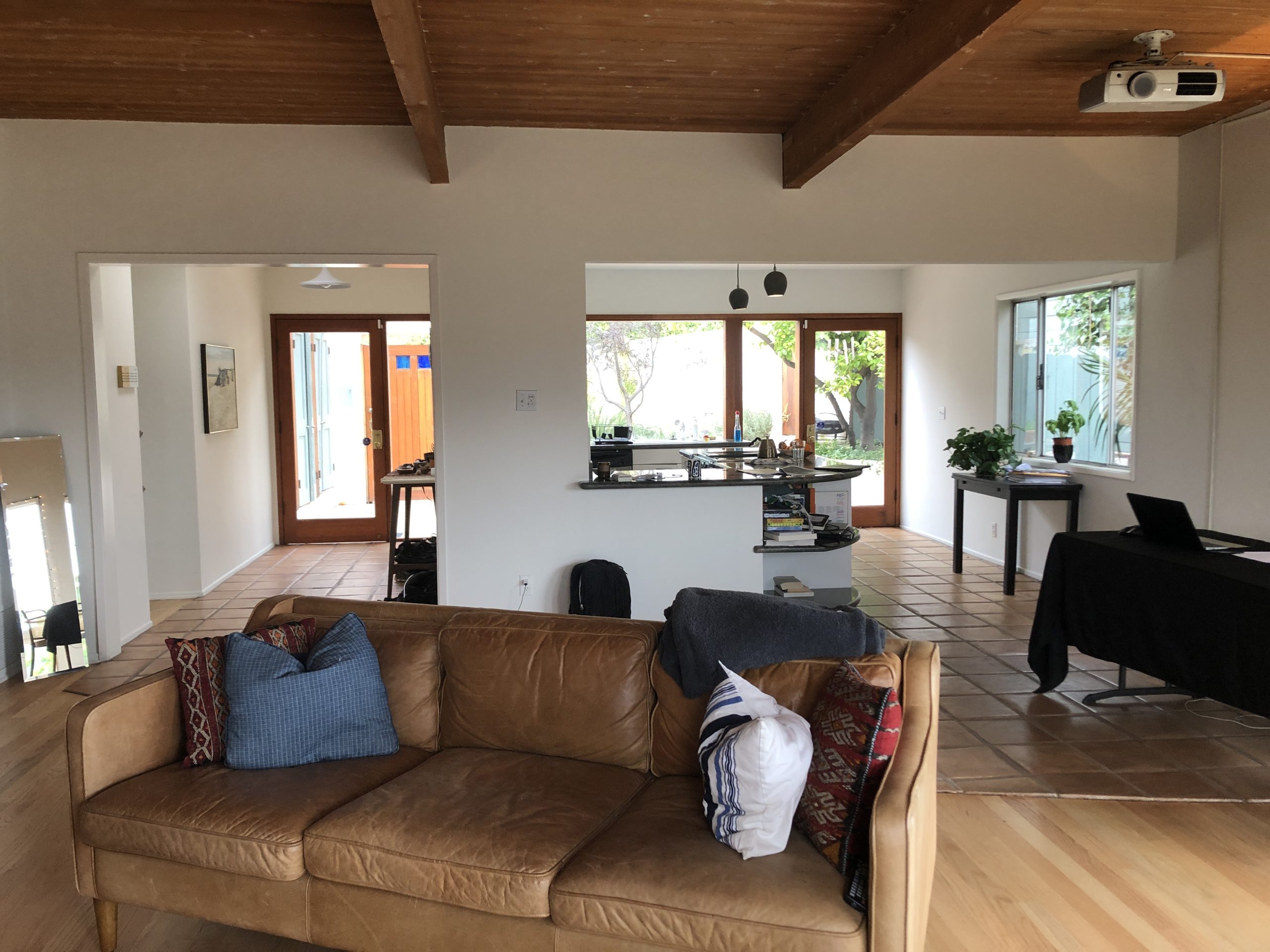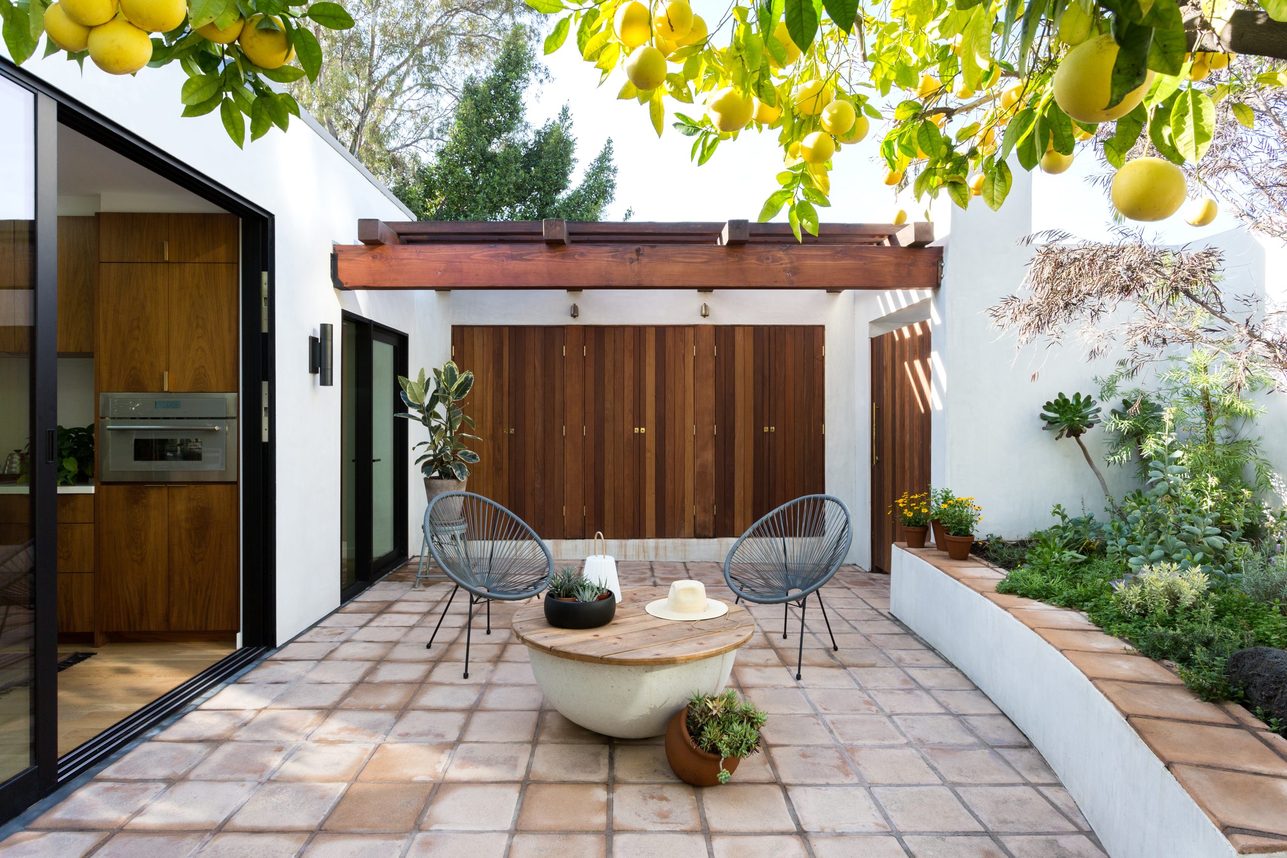 At the rear, this approach becomes most visible. The deck has been rebuilt in Ipe wood, extending the living space outward and framing views toward the Silver Lake Reservoir. Fleetwood sliding doors allow the interior to open directly onto this space, creating a clear link between inside and out. When open, the transition is almost continuous, with the deck functioning as an extension of the main living area.