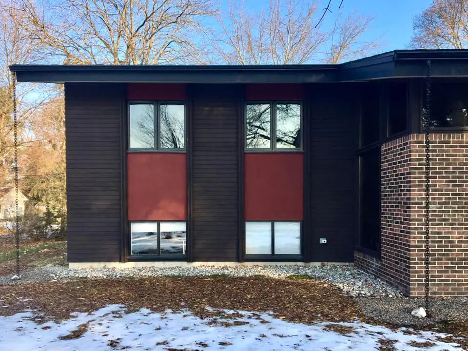 One member shared this suggestion and their own home: “We are in Michigan. We had our windows replaced with Renewal by Anderson and the redwood siding, full of woodpecker holes, with Hardie Board. We are very happy with the results.”
